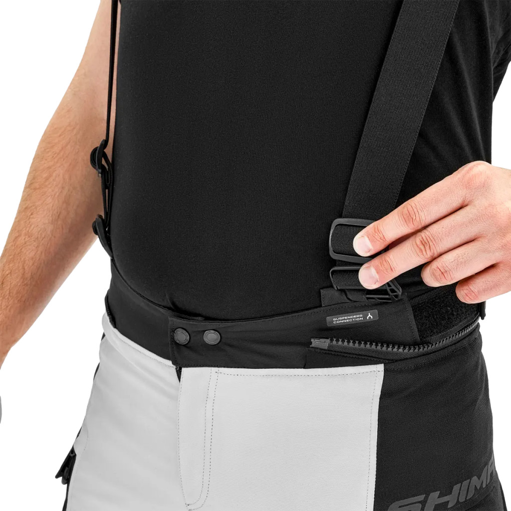 A SHIMA DUNE motoros nadrág sokoldalú választás minden motoros számára, aki a biztonság, a kényelem és a funkcionalitás kombinációját keresi az úton. Tartós RIPSTOP® anyagból készült, amely fokozott ellenállást biztosít a szakadás és a kopás ellen, és első osztályú védelmet nyújt. A SHIMA GFLEXX 2-es szintű csípővédőkkel és az állítható SHIMA GFLEXX 2-es szintű térdvédőkkel felszerelve a nadrág lehetővé teszi, hogy a biztonsági szintet az igényeidhez igazítsd. A SHIMA DUNE nadrág tökéletes minden időjárási körülményre megoldást kínál. A kétrétegű konstrukció, amely egy alaprétegből és egy kivehető NextDry™ vízálló membránból áll, lehetővé teszi a könnyű alkalmazkodást a változó időjárási körülményekhez. A combokon található függőleges szellőzőpanelek, amelyek patenttal rögzíthetők, hatékony légáramlást és hőkényelmet biztosítanak még a forró napokon is. A klasszikus és rövidített hosszúságban is kapható SHIMA DUNE nadrág számos beállítási lehetőséget kínál, például tépőzáras rögzítést a térdnél, a szárvégeken és a csípőnél, így tökéletes illeszkedést biztosít a különböző sziluettekhez és a teljes mozgásszabadságot. A 360°-ban rögzítő cipzárak és a rövid cipzár megkönnyíti a nadrág és a DUNE kabát párosítását, így komplett túraszettet hozhatsz létre. A praktikus megoldások, mint például a csípőn található vízálló zsebek, fokozzák a funkcionalitást, míg a fényvisszaverőkkel ellátott éjjellátó rendszer passzív biztonságot nyújt éjszakai túrák során. A hosszú túrákon a még nagyobb kényelem érdekében a nadrág opcionális pántokkal is felszerelhető.